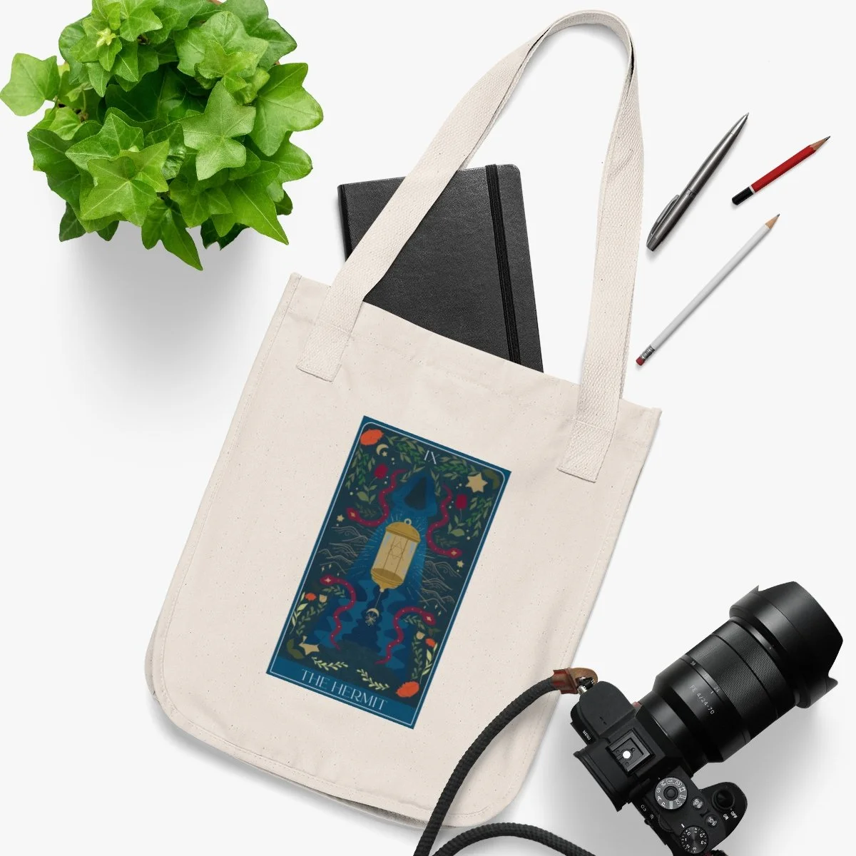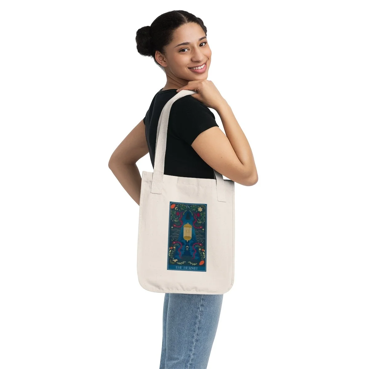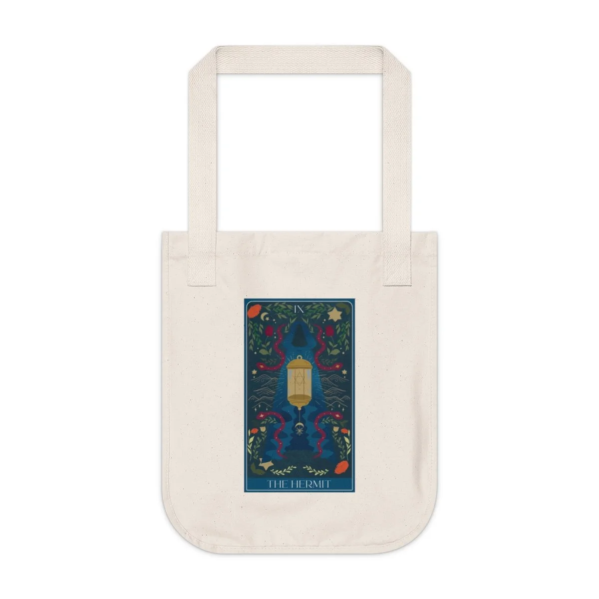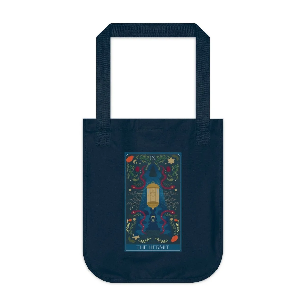 The Hermit tote bag, witchy tote bag, gift for her, gift for a witch, gift for tarot lovers, gift for girlfriend, tarot tote bag, navy blule tote bag
