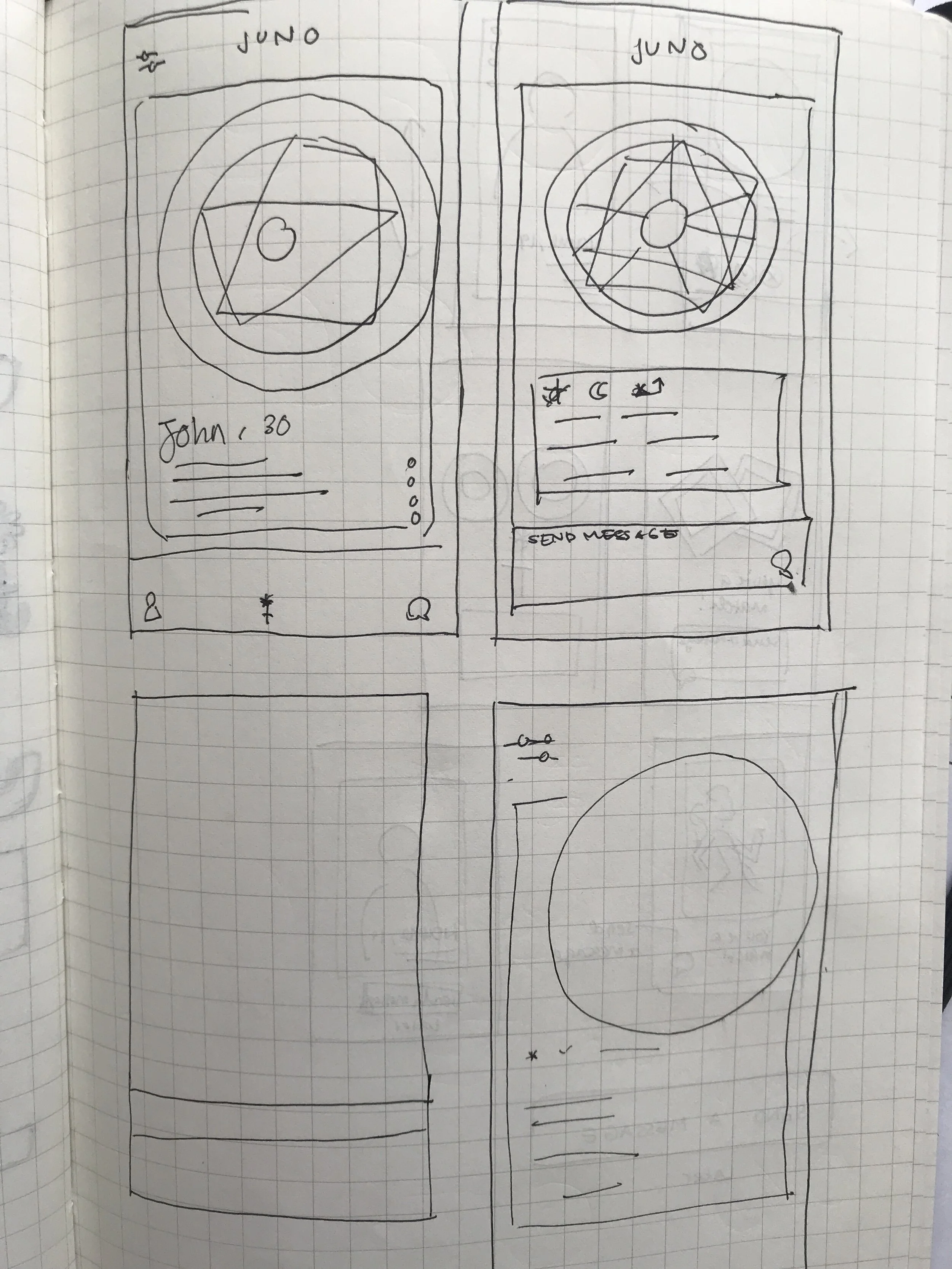 Juno App is a personal project that I developed as part of my graduate review. As someone who loves astrology and used a dating app before, I wanted to combine both of the things I like to create an app that is fun, inclusive, and unique. Since this app is encouraging people to get to know someone before they swipe, the user can only see each other photo’s once they are matched. Instead of a profile photo, the user will see the potential match’s natal chart. This app caters from people who understand advanced astrology to someone who is interested and curious about the natal chart.